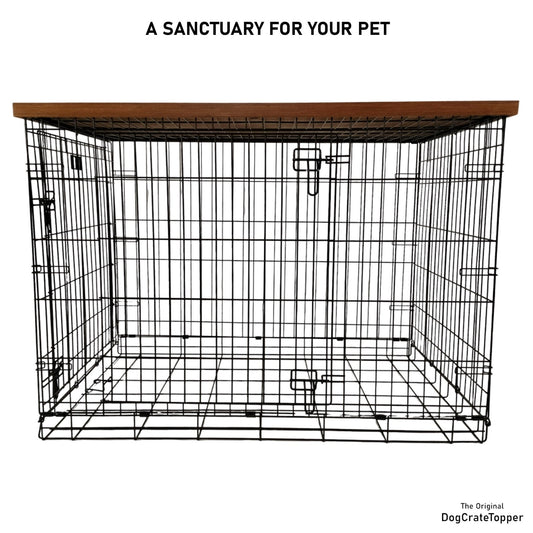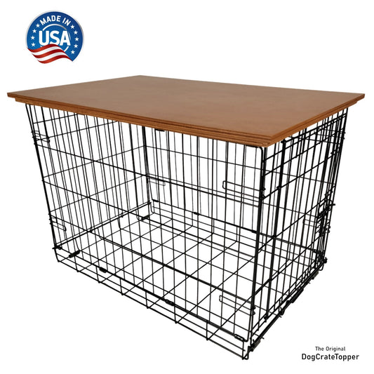 Comfort Edge with Light Brown Stain | Stylish Wood Dog Crate Topper - Secure Fit, Pet-Safe Finish